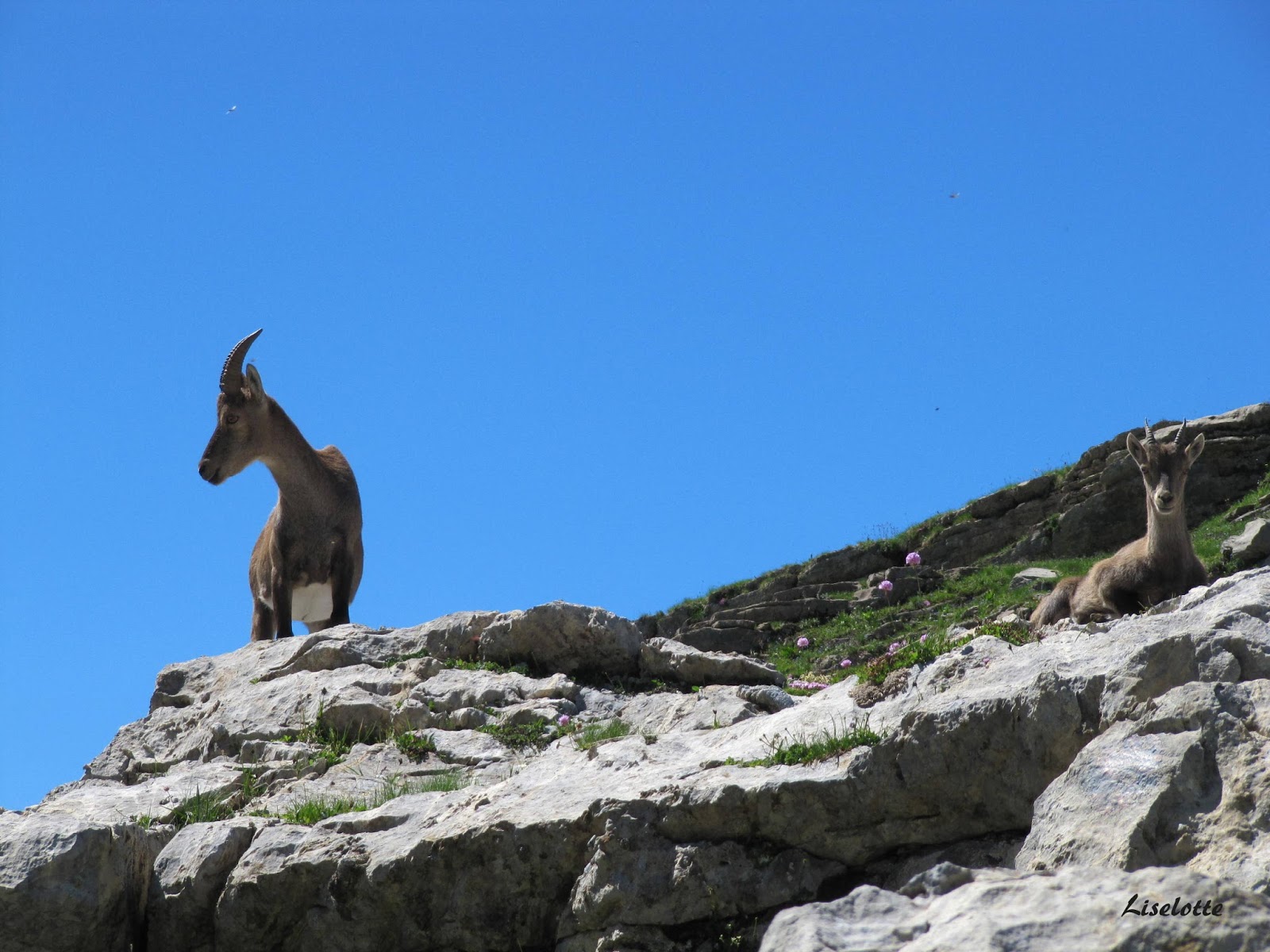 Une grande rando au-dessus de Flaine qui nous amenait à 2500m d'altitude. Au passage d'un col, les chamois nous attendaient... Ils jouaient les stars et se sont laissés photographier sans problème.