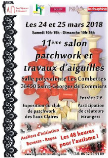 Comme chaque année a lieu le week end prochain, à St Georges de Commiers, en Isère, le Salon Patch et Travaux d'Aiguilles (ici nous l'appelons :"Les 48h de l'autisme)